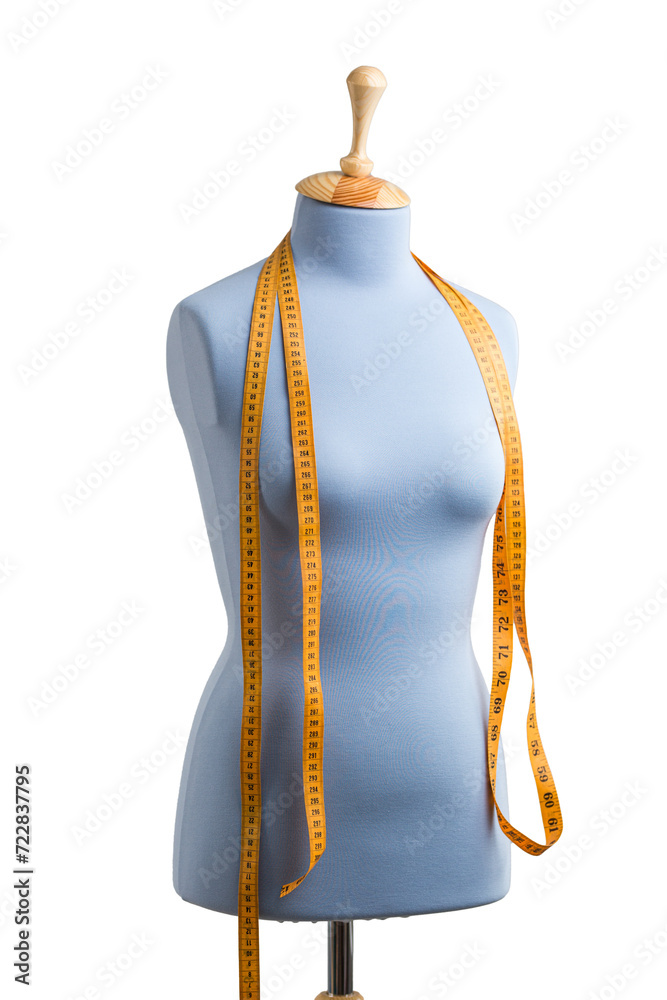 Blue tailor dummy mannequin with measuring tape. Transparent PNG #722837795