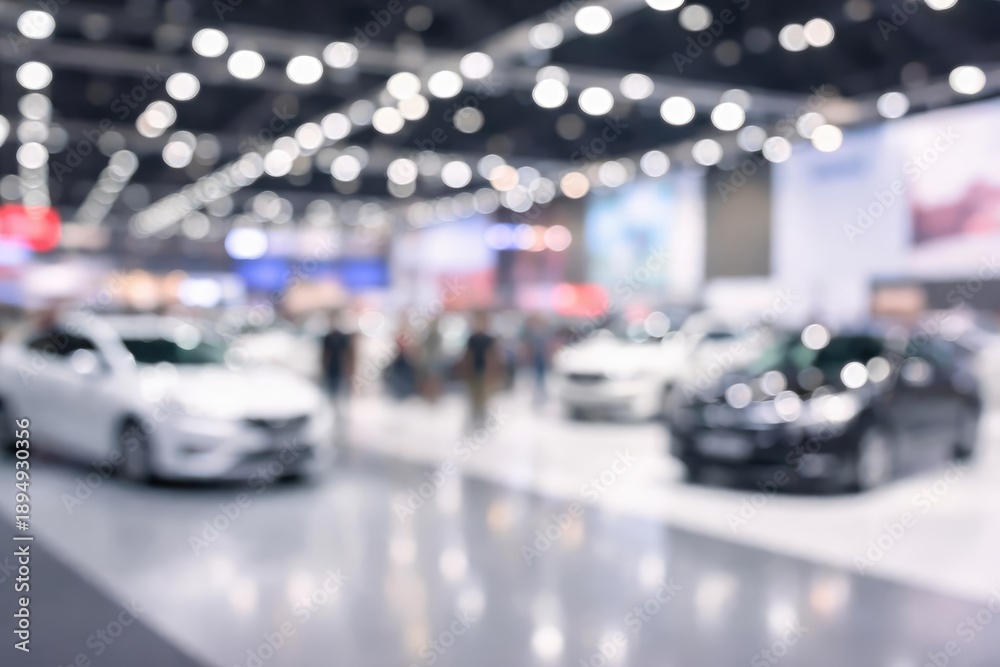 Blurred and unfocused motor vehicle exhibition interior designed as a soft background #1894930356