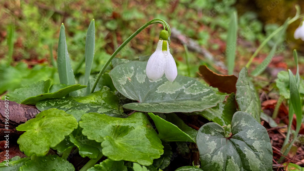 Blurred bokeh background highlighting a cluster of snowdrops. #1966054077