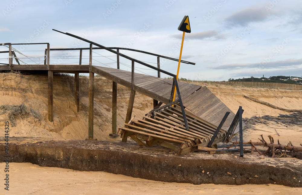 Boardwalk to the beach damaged by hurricane Irma striking the east coast #1944414325