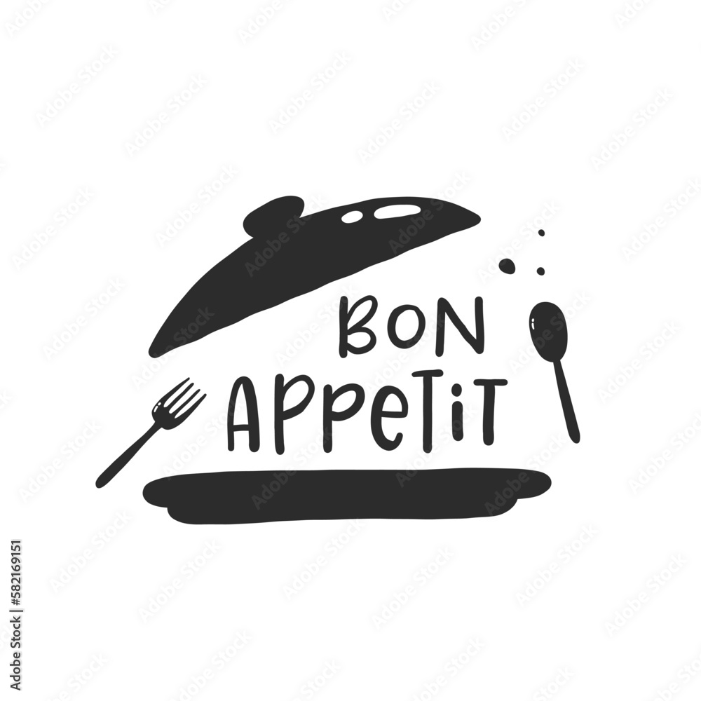 Bon appetit. Hand drawn vector illustration. For badges, labels, logo, bakery, street festival, farmers market, country fair, shop, kitchen classes, cafe, food studio #582169151