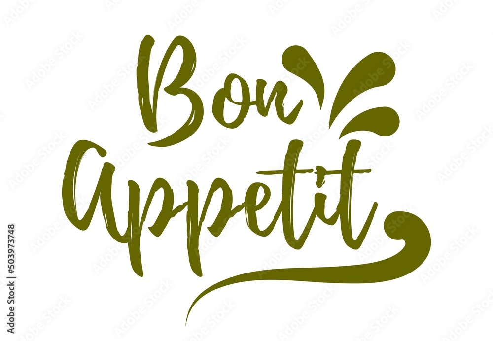 Bon appetit hand lettering word for sticker, decor, print. Modern stylized typography. #503973748