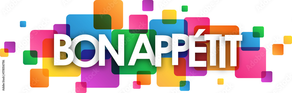 BON APPETIT white typography banner with colorful squares on transparent background #1780567116
