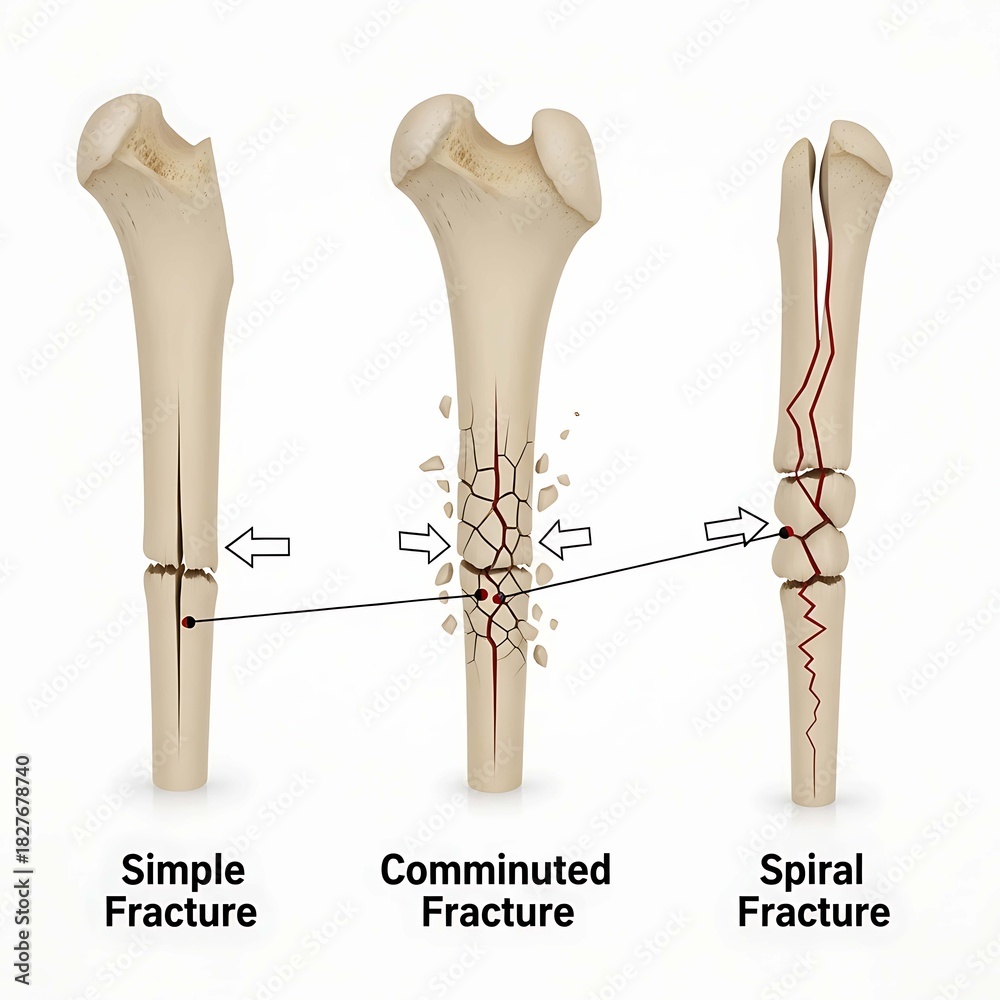 Bone fracture types simple comminuted spiral diagram #1827678740