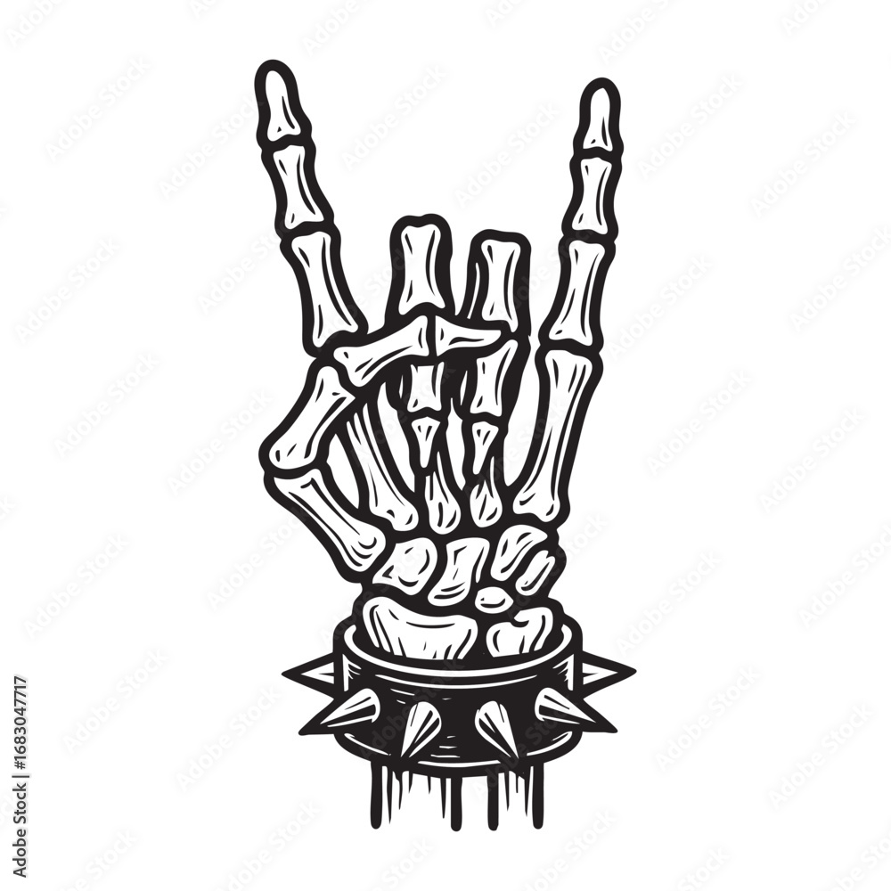 bone hand metal gesture with spiked bracelet hand drawn graphic vector illustration #1683047717