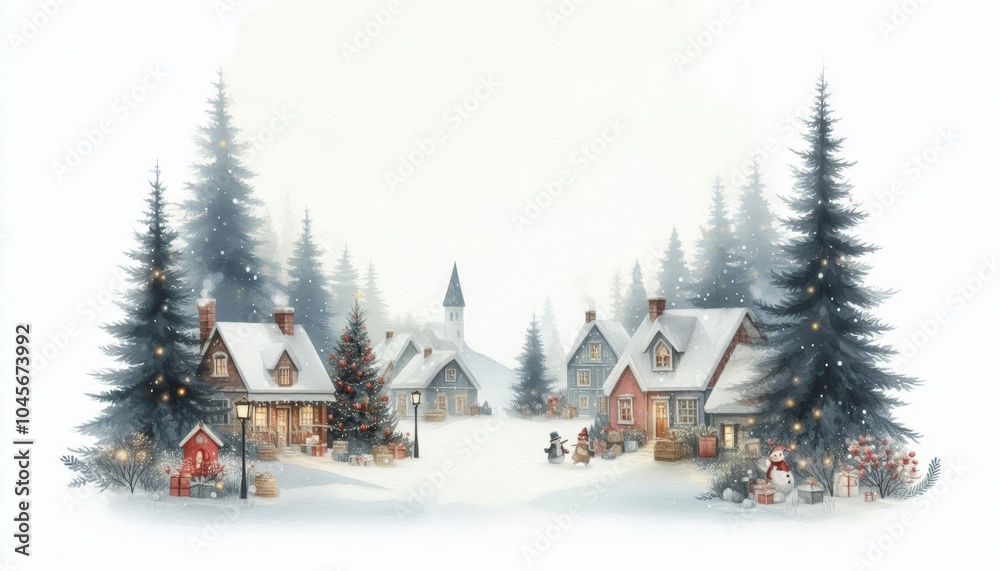 bosque navidad. estilo acuarela. tarjeta #1045673992