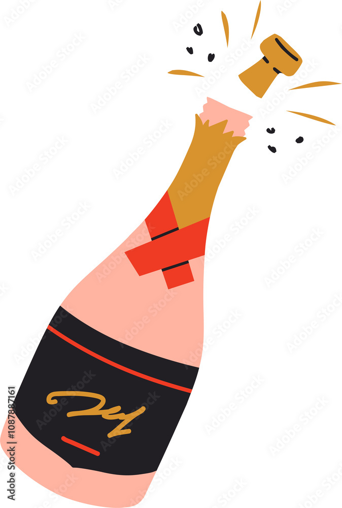 Bottle of champagne illustration. Celebrating with drinks #1087887161