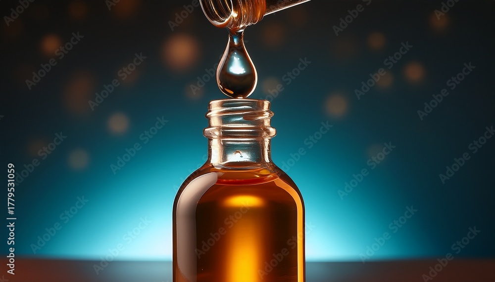bottle of liquid with drop falling highlighting the essence of fluidity glass bottle with swing top #1779531059