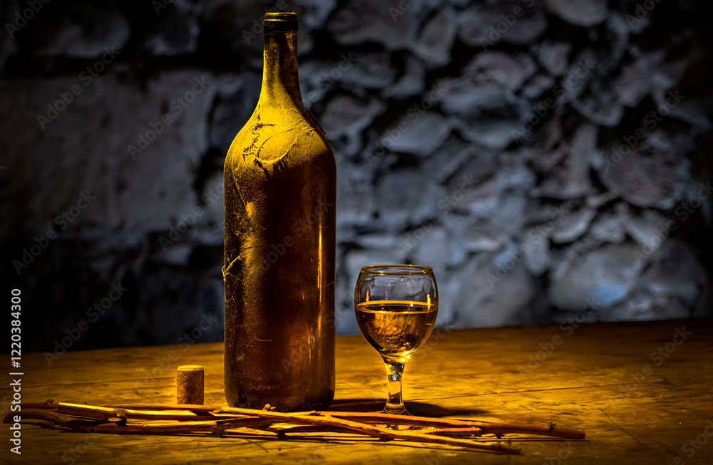 Bottle of white wine and a glass #1220384300