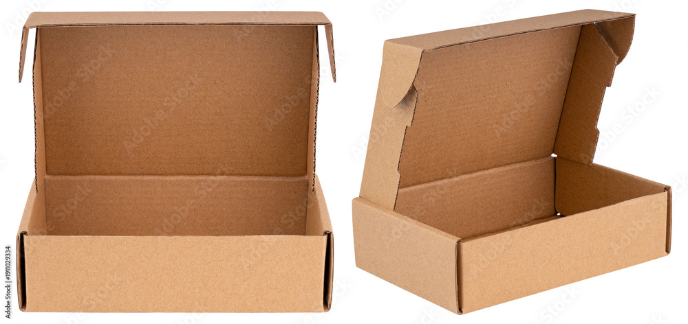 Box. Brown cardboard box with lid for packaging and storage. Eco friendly paper box for shipping, gift wrapping, presents. Retail packaging for handmade products, crafts, branding and minimal design #1911029334
