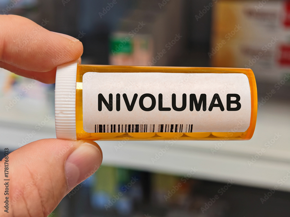 Box of NIVOLUMAB tablets on a hospital pharmacy table used to treat cancers a PD1 inhibitor immunotherapy. #1781768013
