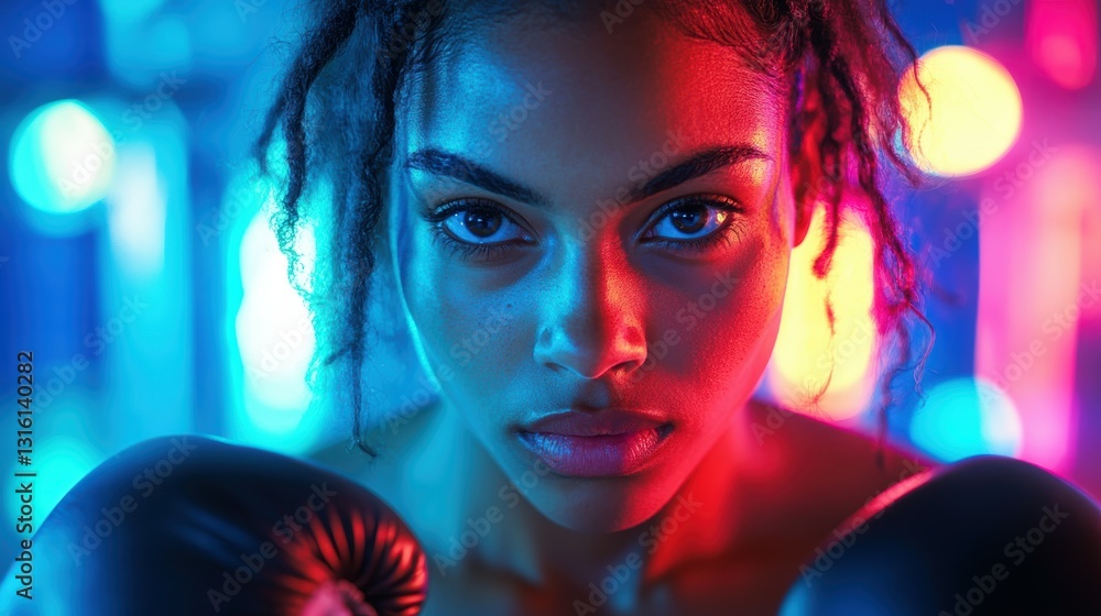 Boxing match action urban gym portrait image vibrant lighting close-up view strength and determination #1316140282