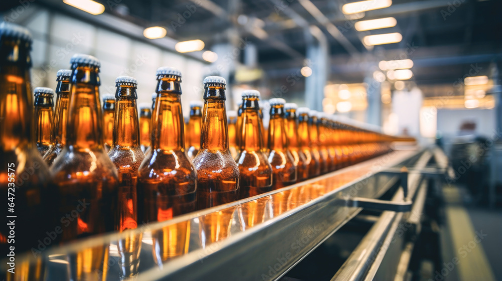 Brewing and bottling beer in a glass bottle factory. #647235575