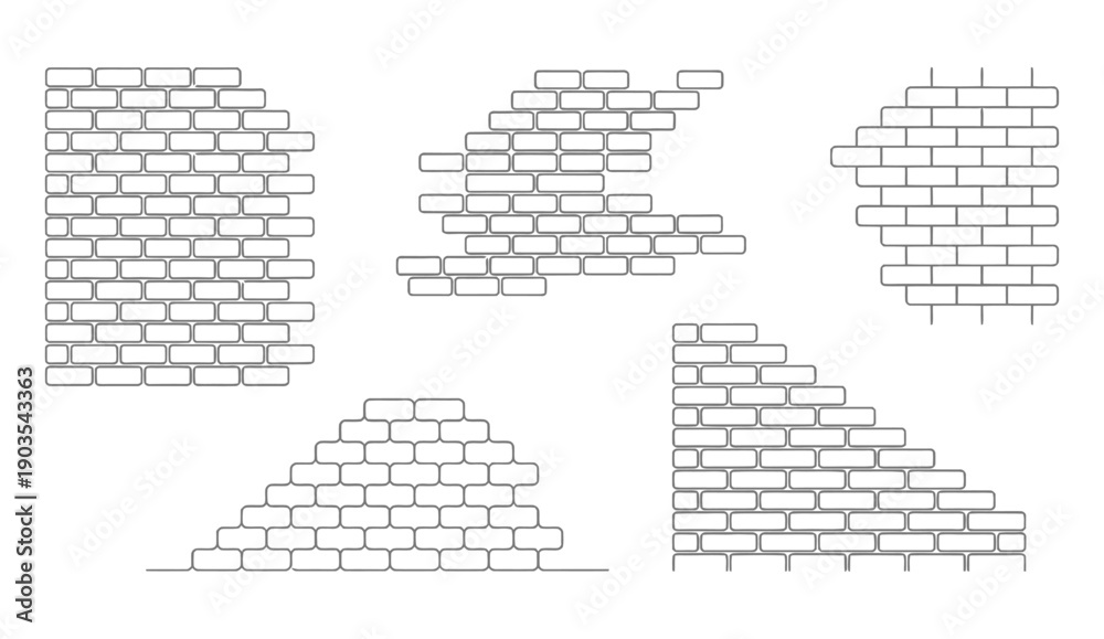 Brick wall construction pattern vector, brick walls outline vector on a white background. #1903543363