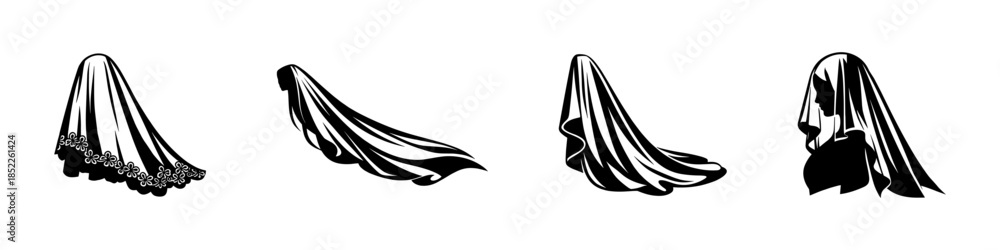 Bridal veils vector illustration, bride veil, wedding celebration, flat vector style #1852261424