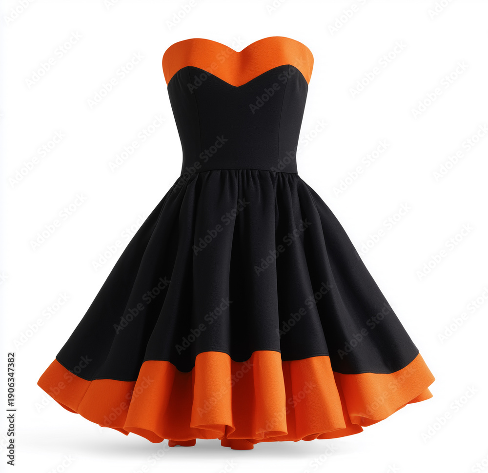 Bright black and orange dress with a ruffled hem for festive occasions #1906347382