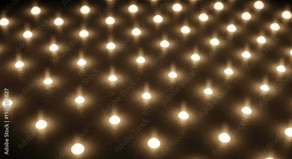 Bright glowing string lights arranged in a grid pattern creating a warm festive atmosphere perfect for holiday decorations and outdoor events in any setting #1978159627