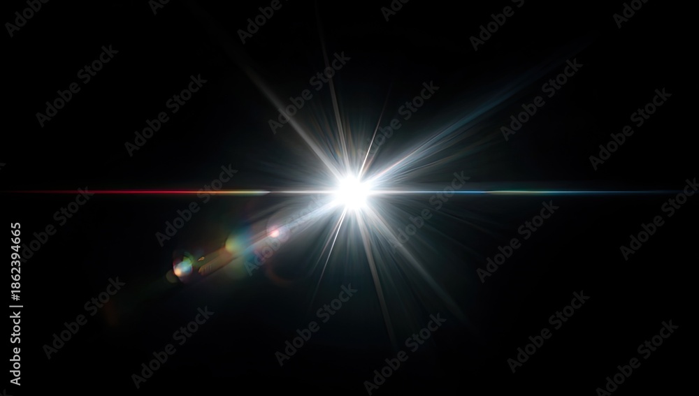 Bright, intense starburst effect, with rainbow hues, and sharp light rays #1862394665