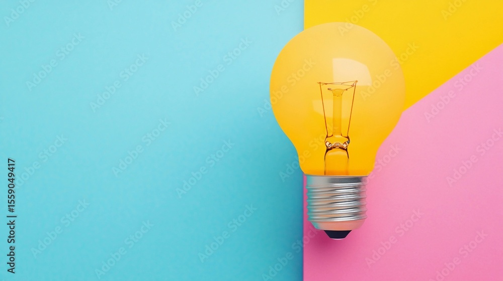 Bright light bulb against vibrant geometric background with copy space in pastel colors depicting creativity and inspiration, work smarter not harder concept #1559049417