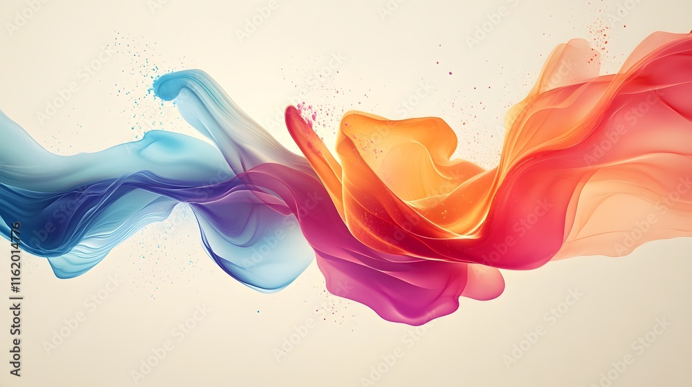 Bright splashes of color meeting at the center creating a burst of abstract shapes and fluid lines #1162014776