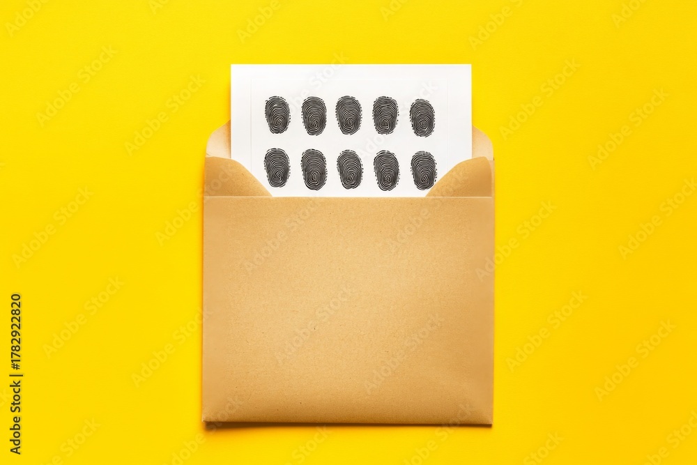 Brown envelope yellow background top there is An with fingerprints #1782922820