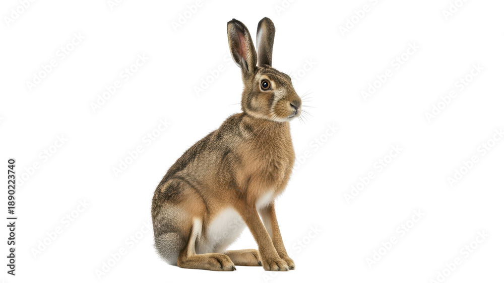 Brown European Hare Sitting with Alert Expression isolated PNG with Transparent Background #1890223740