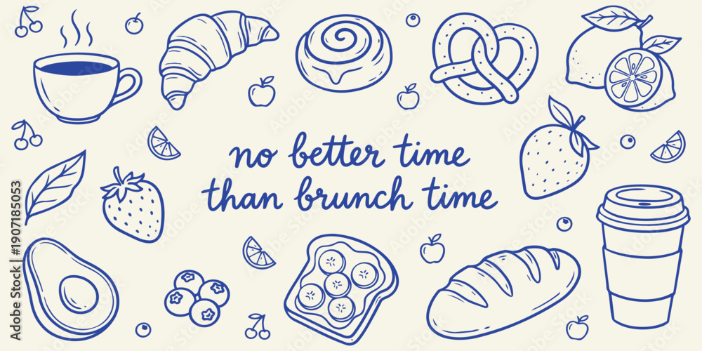Brunch food doodle icons background vector with hand drawn breakfast snacks drinks and bakery elements sketch style illustration for cafe menu poster print use #1907185053