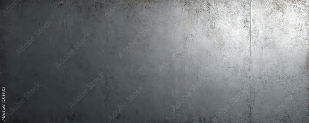 Brushed industrial metal background with light gradient effect. Steel texture with welding seam, copy space. Dark silver surface with scratches, grunge material for banner mockup, engineering #1293344523