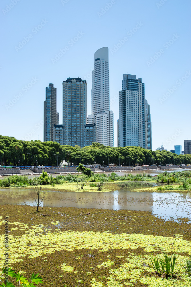 Buenos Aires Ecological Reserve in Front of High-Rise Modern Buildings #1861506625