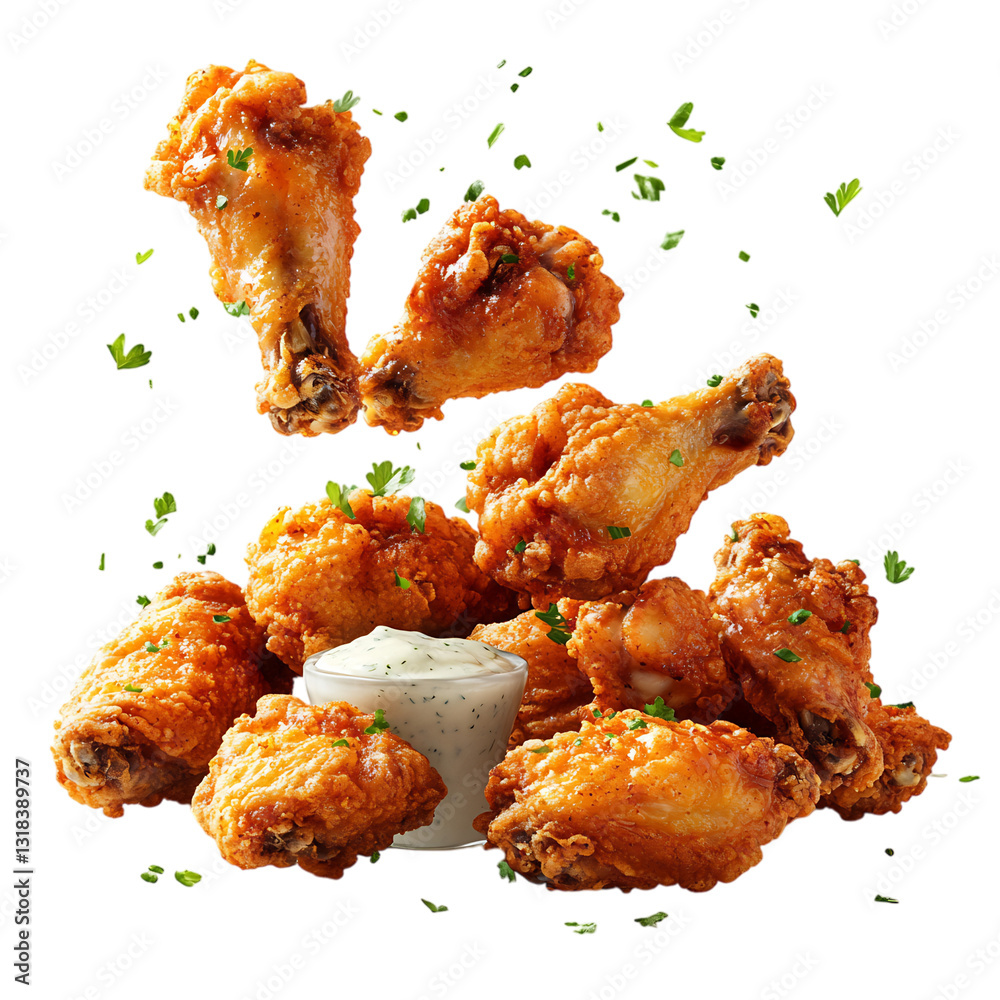 Buffalo Fried Chicken Wings with Ranch Dipping Sauce Isolated on Transparent Background #1318389737