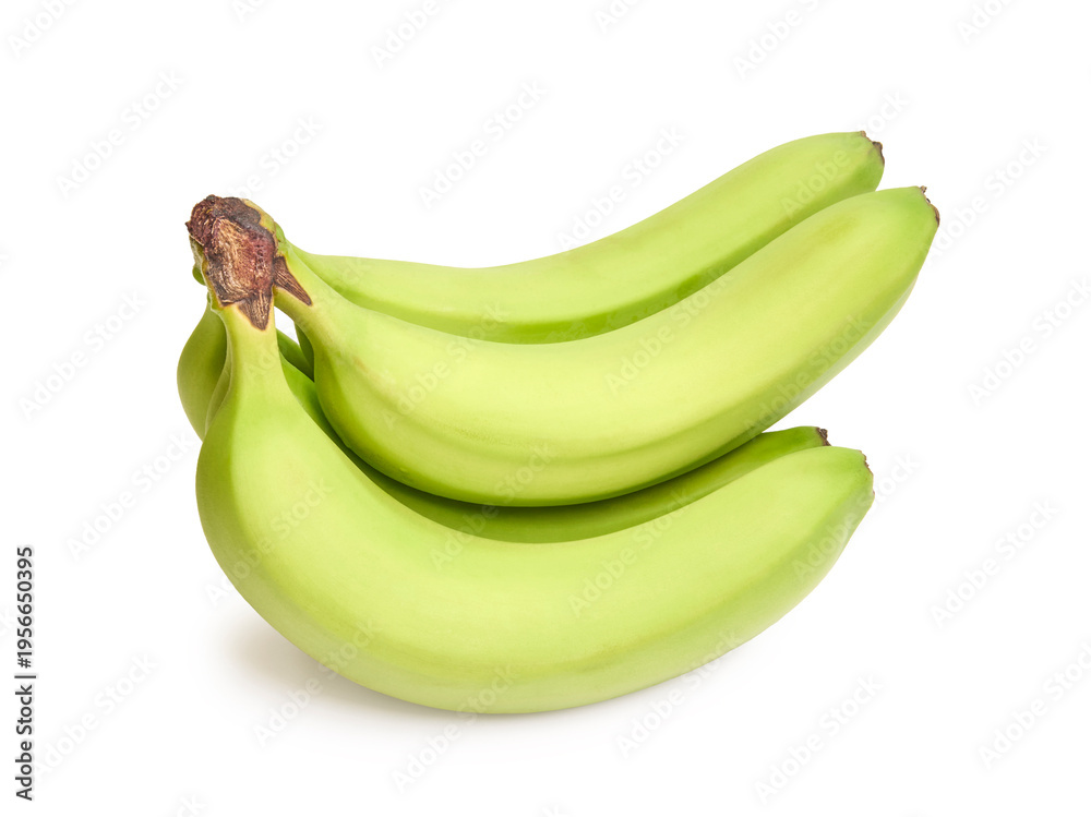 Bundle of Unripe Green Bananas Isolated on White Background #1956650395