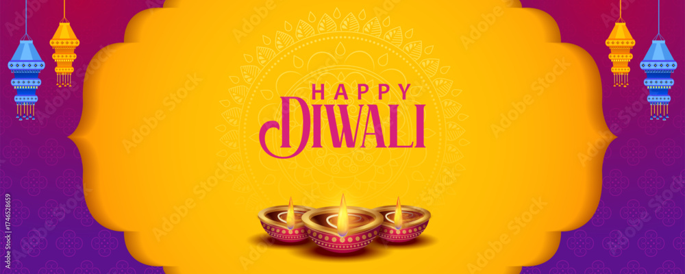 burning diya on Happy Diwali Holiday background for light festival of India #1746528659