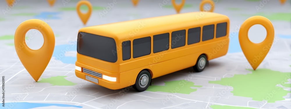 Bus moving along map with animated location arrows, School bus GPS tracking #1781620915