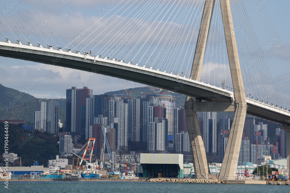 Busanhang Bridge above the bustling port and modern cityscape of Busan, South Korea #1790464459