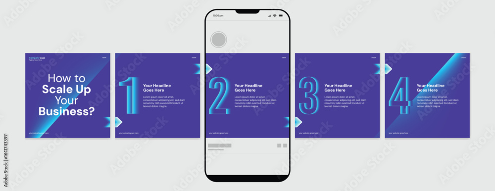 Business carousel post template for advertising, Set of carousel post for Instagram and LinkedIn, Editable social media carousel layout, template eps 10. #1641743397