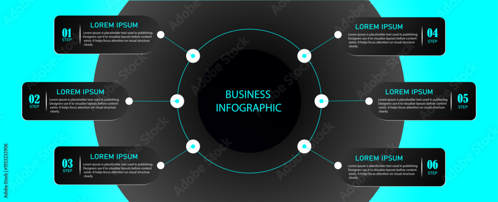 Business diagram with 6 circular steps | Marketing chart infographic design with numbering steps or options for digital process and planning | Modern business planning representation demo #1933233906