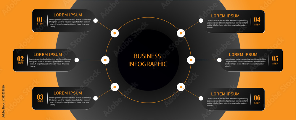 Business diagram with 6 circular timeline steps – Marketing chart infographic design with numbering steps or options for digital process and planning | Modern business representation demo #1933233860