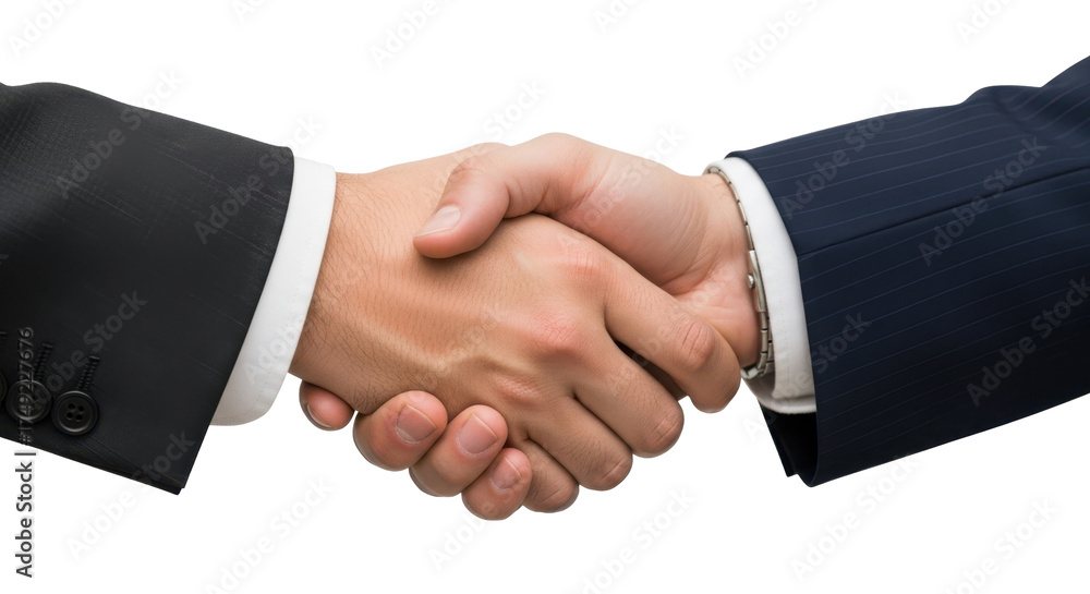 Business handshake between two men in suits, closeup. Isolated on transparent background, png #1749227676