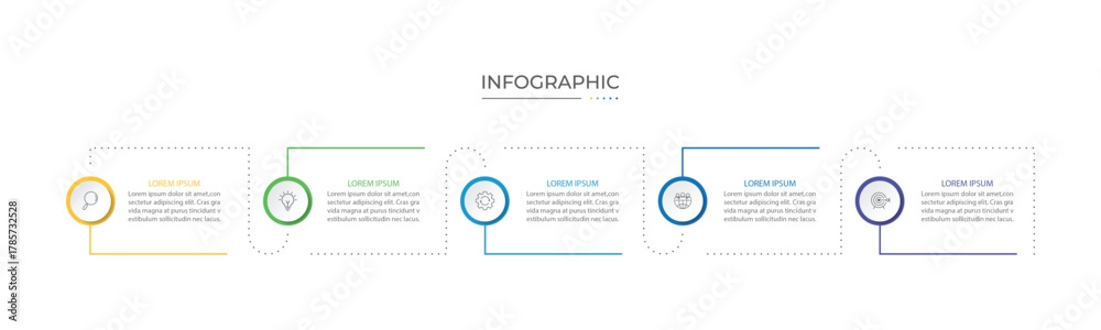 Business infographic design with 5 options. Vector thin line label with hexagons template. #1785732528