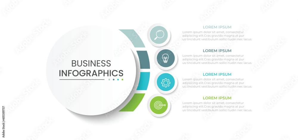Business infographic template. Circle creative element design with marketing icons. Vector illustration 4 Step. #605389757