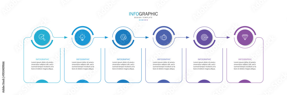 Business infographic template. 6 Step timeline journey. Process diagram, Infographic elements vector illustration. #1930409866