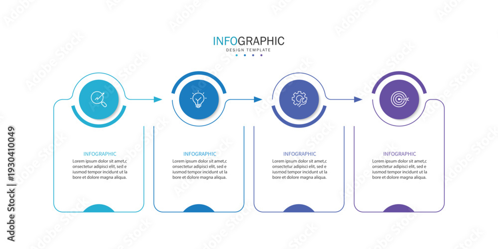 Business infographic template. 4 Step timeline journey. Process diagram, Infographic elements vector illustration. #1930410049