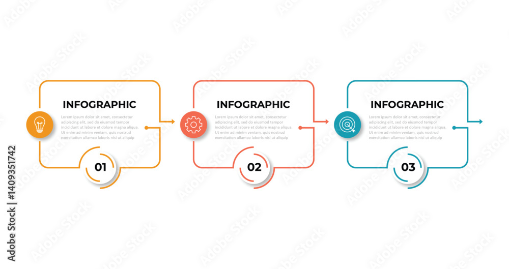 Business infographic template. 3 Step timeline journey. Process diagram, 3 options on white background, Infograph elements vector illustration. #1409351742
