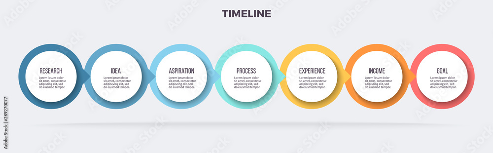 Business infographics. Timeline with 7 steps, options, circles. Vector template. #269270077