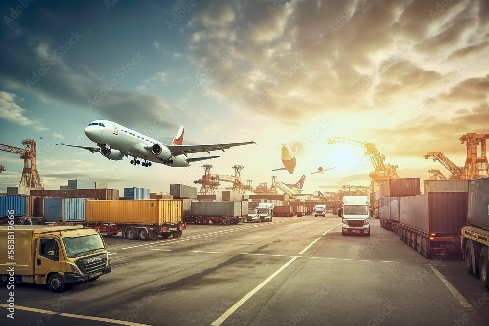 Business Logistics Concept, Plane, Truck, Train Import-Export Operations. #583819666