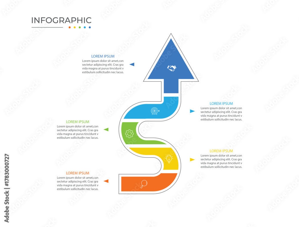Business step timeline infographic arrow template. Modern milestone element timeline 5 options #1783000727