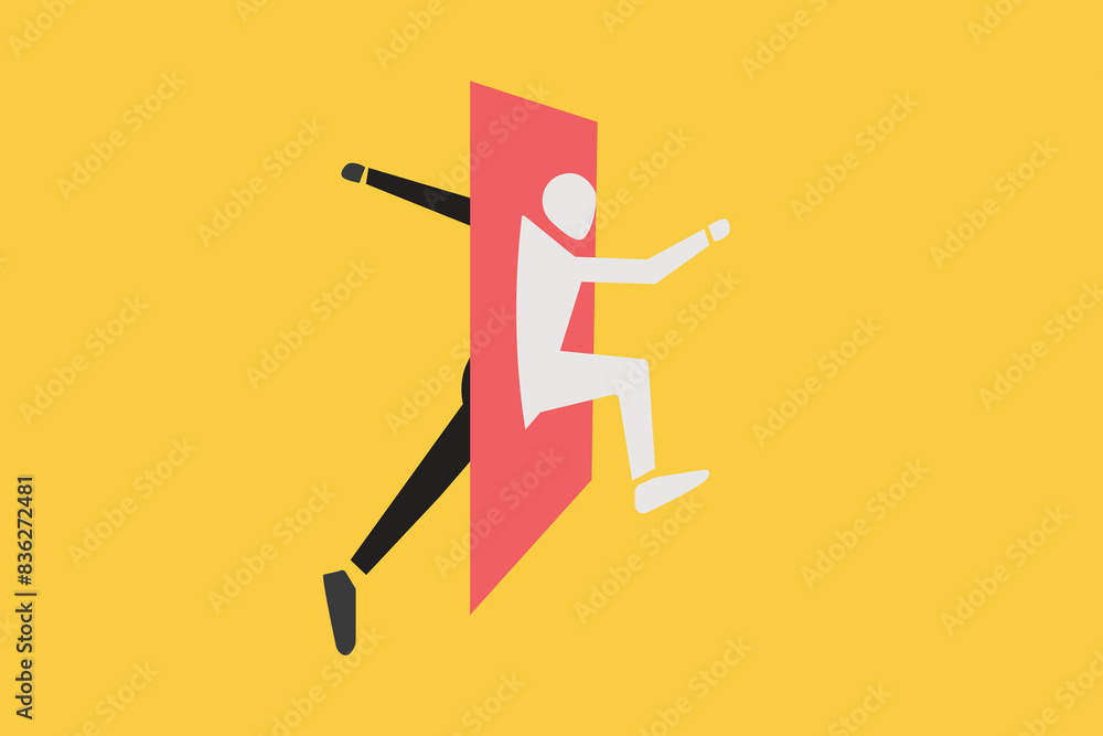 Businessman escape from trap. concept of escape from comfort zone, experience new challenge and break free for freedom #836272481