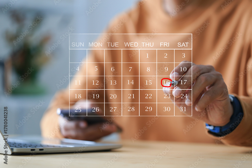 Businessman manages time for effective work. Highlight appointment reminders and meeting agenda on the calendar. #1780041238