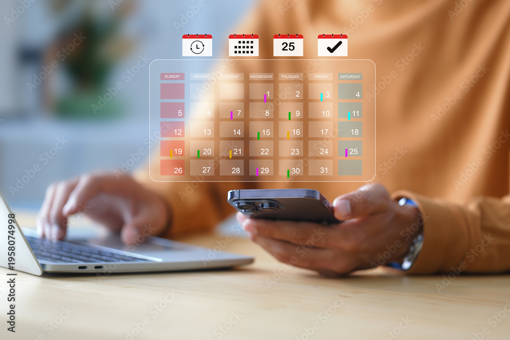 Businessman Planning and Scheduling Events on Virtual Digital Calendar Interface. #1958074998