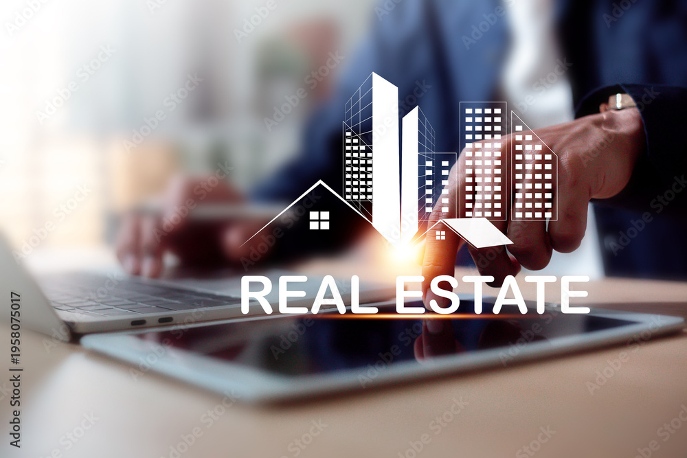 Businessman Using Tablet for Smart Home Technology and Real Estate Data Analysis. #1958075017